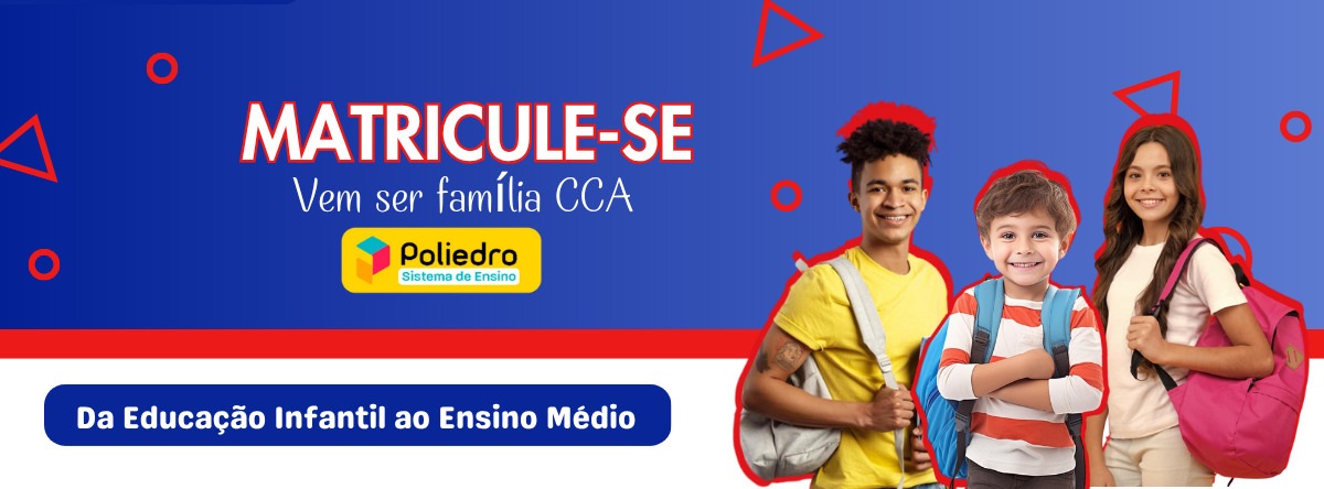 Acreditamos que a educação é a única forma de melhorar o indivíduo e a sociedade. Entendemos que a escola é um ambiente para aquisição de conhecimentos, e aprendizagem para a vida em todos os sentidos. Defendemos que o respeito ao próximo é um valor fundamental e, por isso, “abrimos nossas portas e não construímos muros”. No CCA, queremos que os nossos alunos aprendam a conviver com as diferenças. Seja bem-vindo (a) à #FAMÍLIACCA.